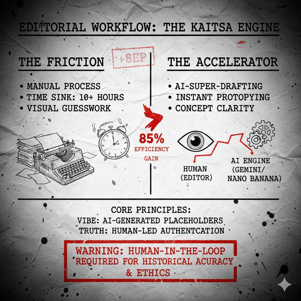 The KAITSA Engine demonstrates that AI is an accelerator for editorial vision, not a substitute for historical reality or human judgment.